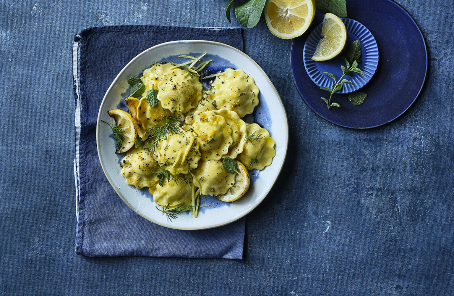 ricotta, spinach & lemon zest ravioli with dill, mint and lemon