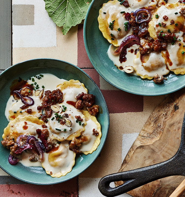 MUSHROOM AND TRUFFLE RAVIOLI WITH GRUYERE CHEESE SAUCE