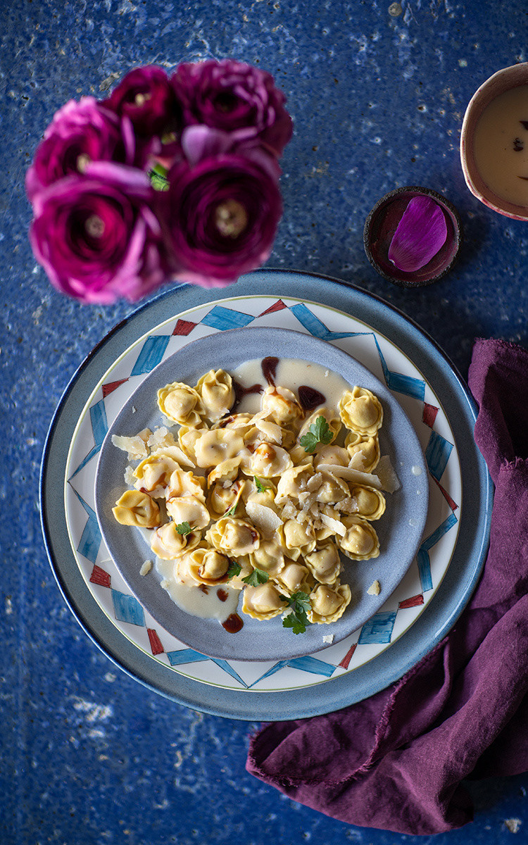 Pumpkin & mozzarella tortellini with parmesan sauce