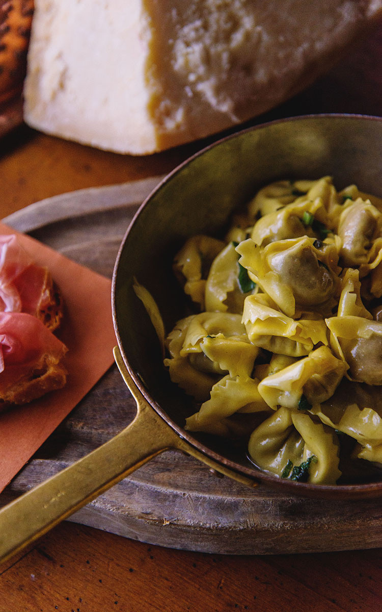 Ricotta & Spinach Tortellini WITH PROSCIUTTO CROSTINI