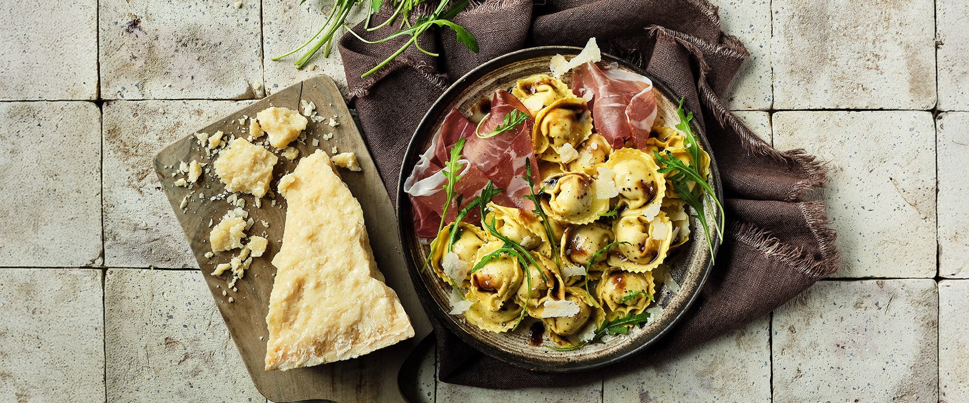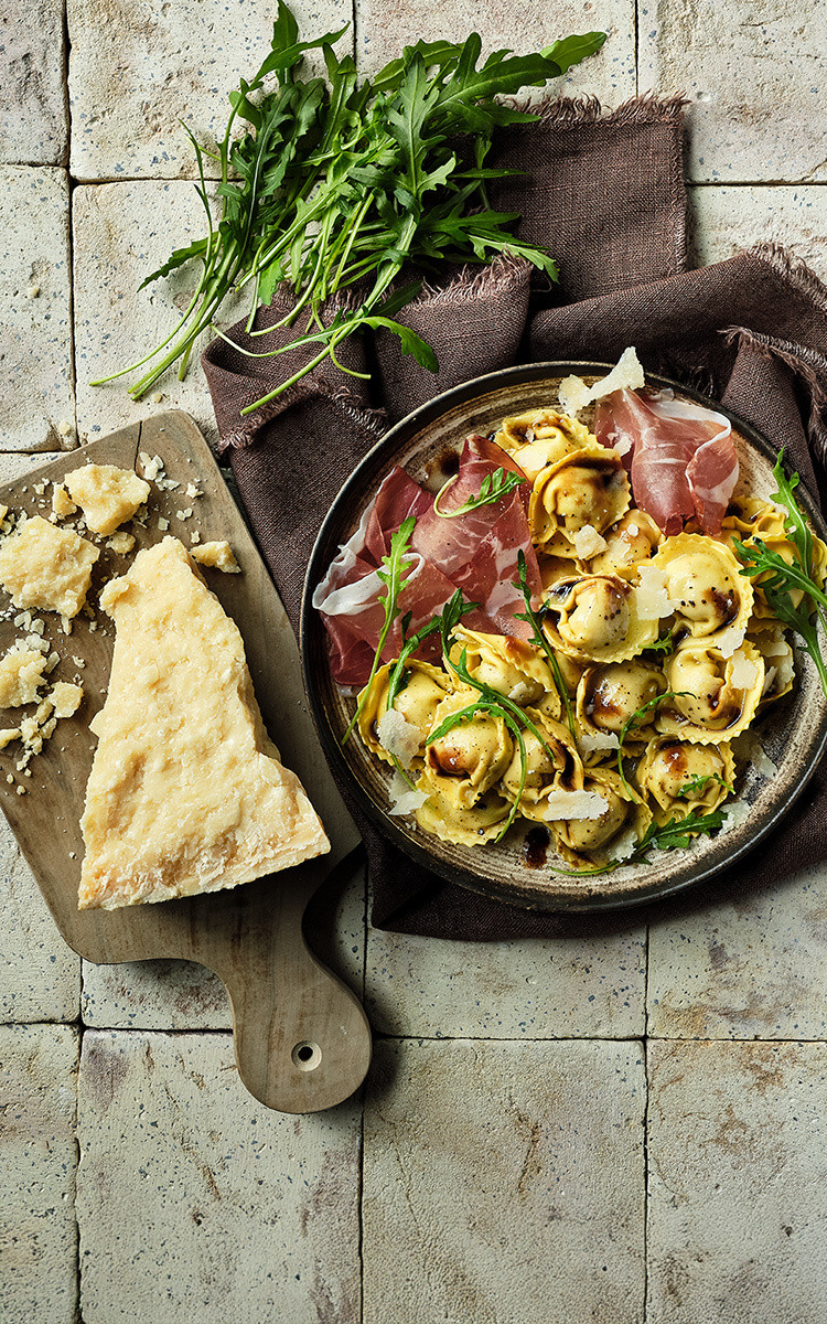 TORTELLINI WITH PARMIGIANO REGGIANO, PROSCIUTTO CRUDO AND ROCKET